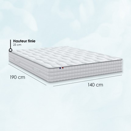 Matelas ressorts 5 zones, soutien ferme et confort essentiel, fabriqué en France pour un sommeil accessible et pratique.