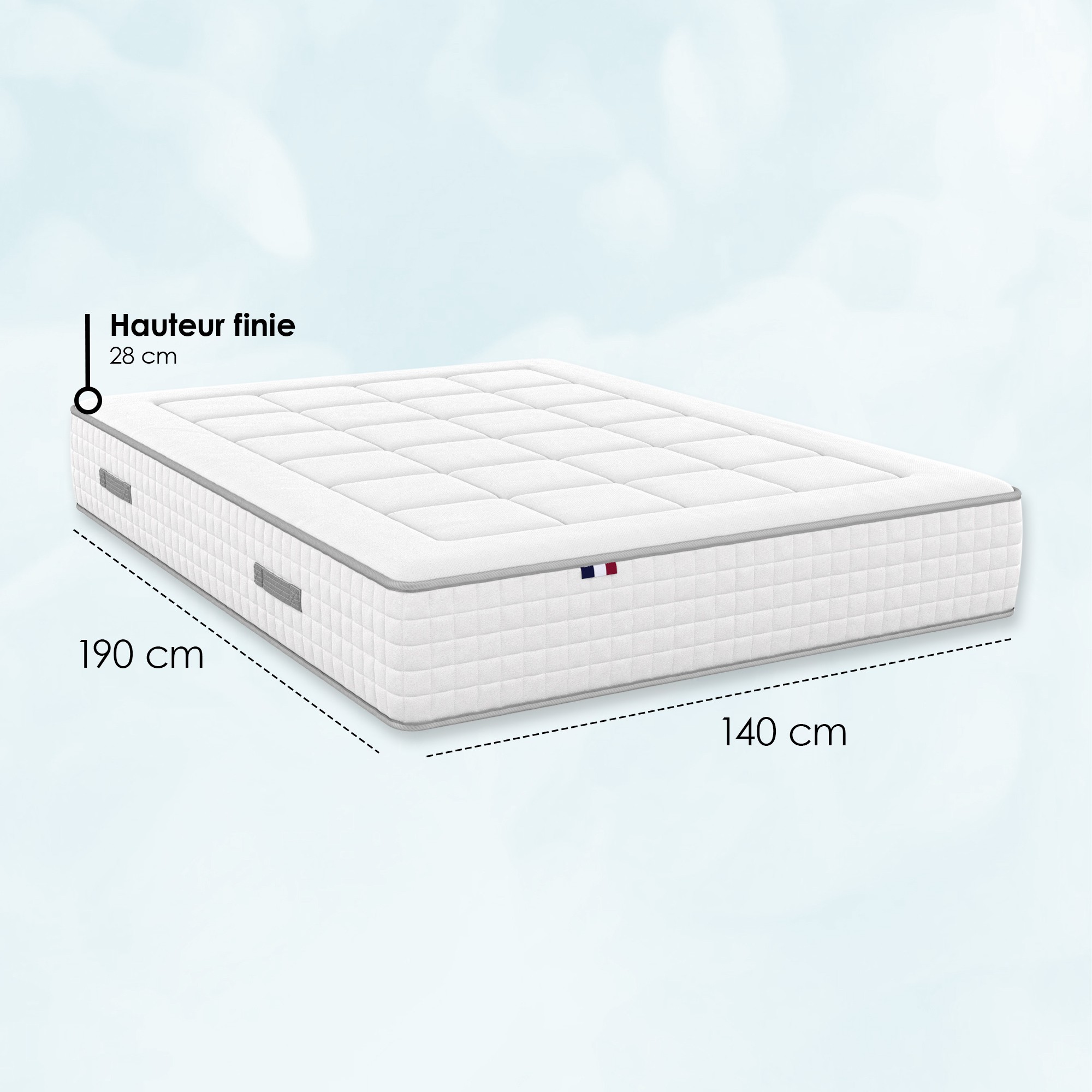 Matelas ressorts 5 zones, soutien ferme et confort essentiel, fabriqué en France pour un sommeil accessible et pratique.