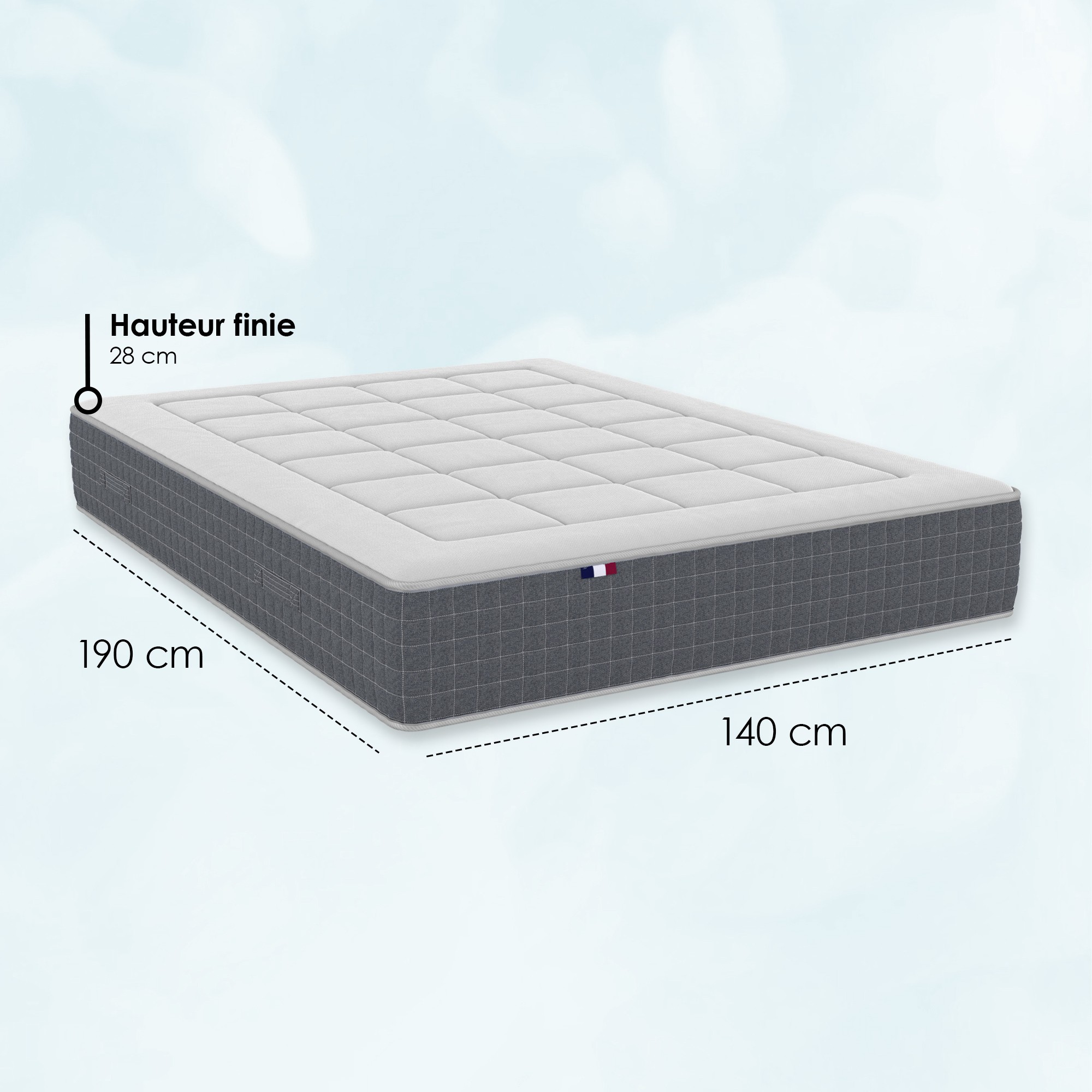 Matelas ressorts 5 zones, soutien ferme et confort essentiel, fabriqué en France pour un sommeil accessible et pratique.