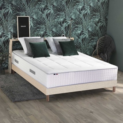 Le pack literie associe un matelas à ressorts ensachés et un sommier en bois massif pour un confort optimal et une durabilité maximale.