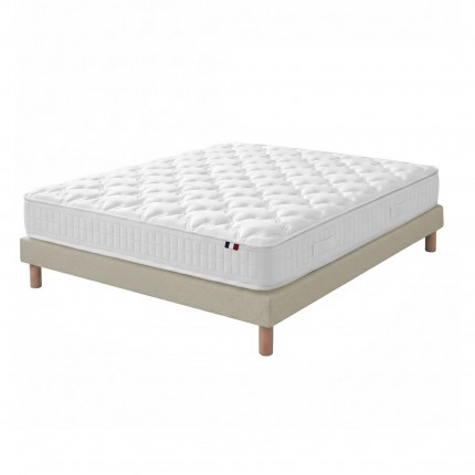 Ensemble literie : matelas à ressorts et mémoire de forme avec sommier robuste, pour un confort optimal et une fabrication française durable.