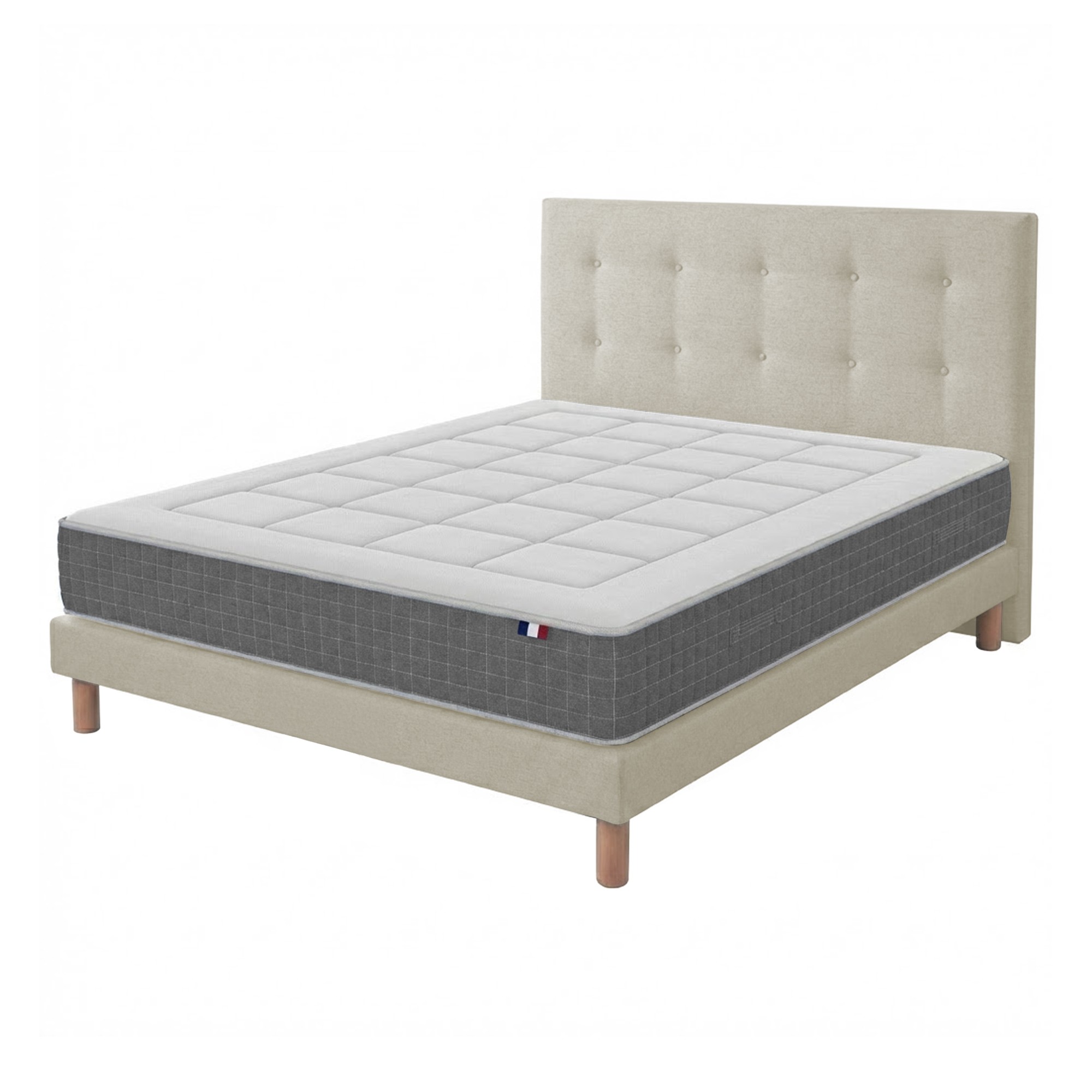 Ensemble literie complet : matelas à ressorts, sommier robuste et design, pour un confort optimal et une qualité française durable.
