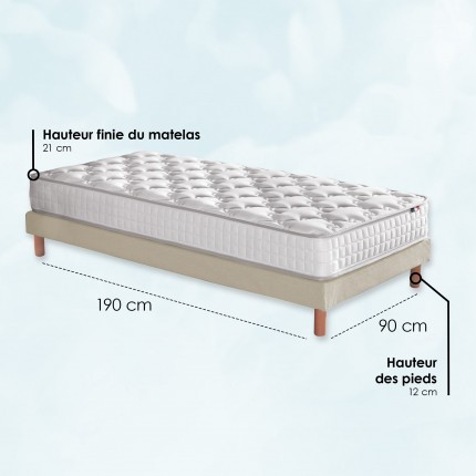 Pack matelas à ressorts et sommier en bois massif, fabriqué en France, alliant confort ferme, durabilité et praticité, pour des nuits sereines et optimisées.