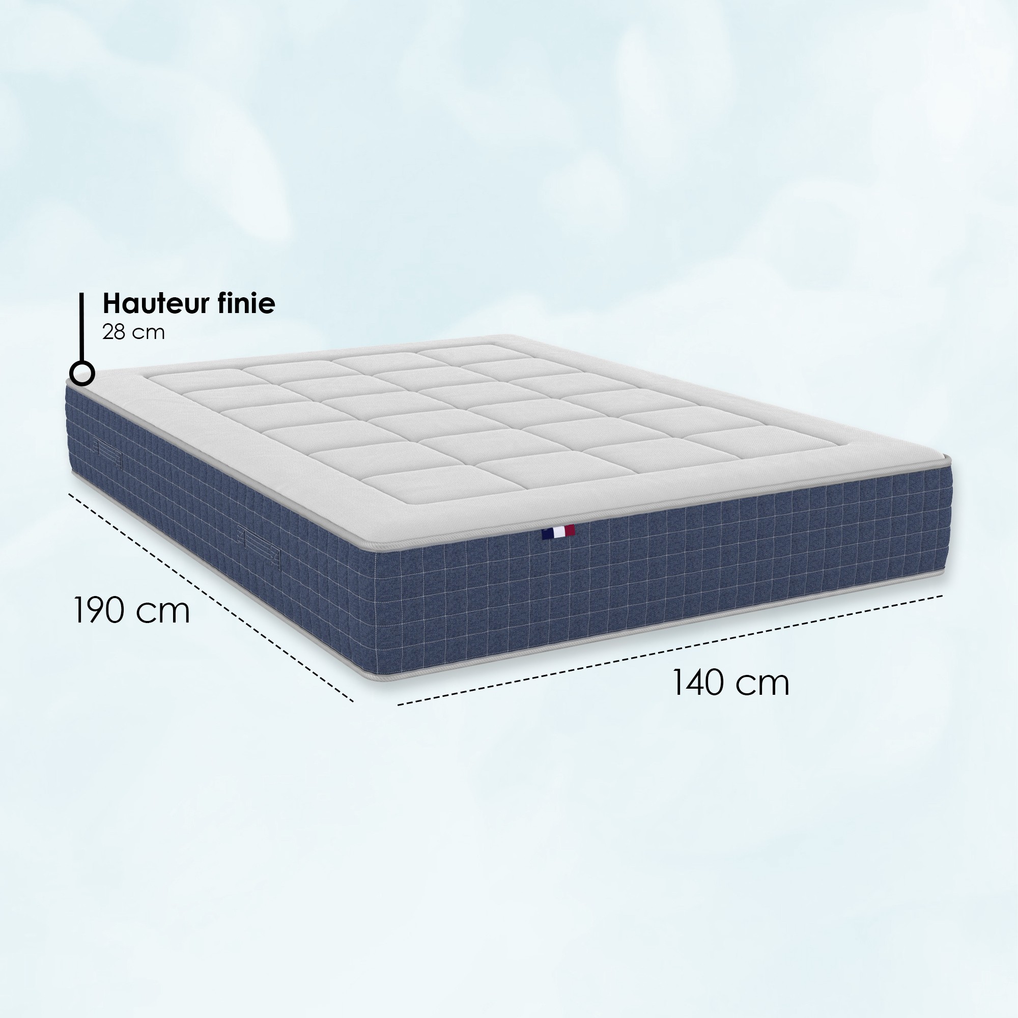 Matelas à ressorts et mémoire de forme, fabriqué en France, alliant confort, soutien ferme et engagement écologique pour des nuits parfaites.