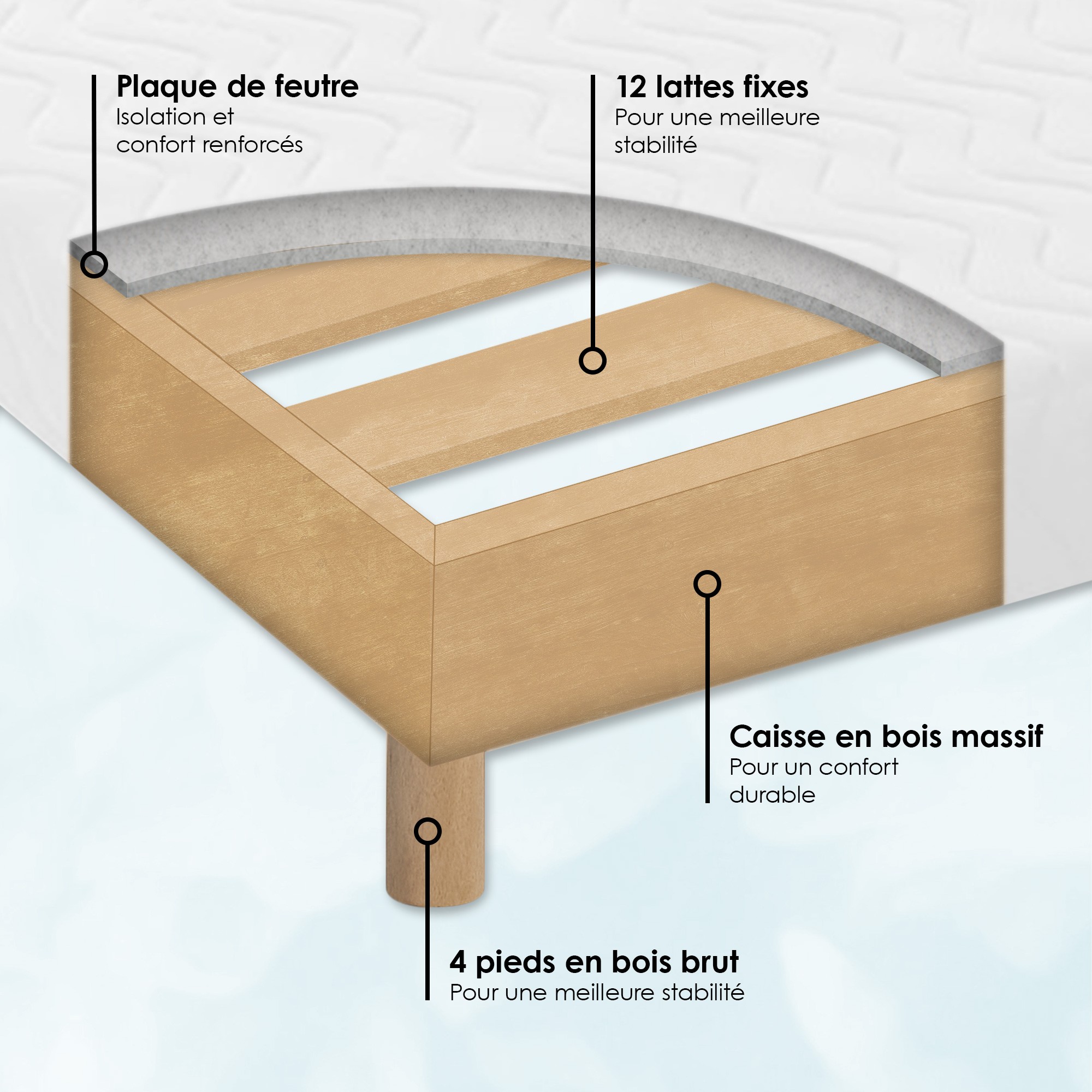 Ce sommier tapissier à lattes rigides, fabriqué en France, garantit un soutien optimal et une bonne aération de votre matelas.