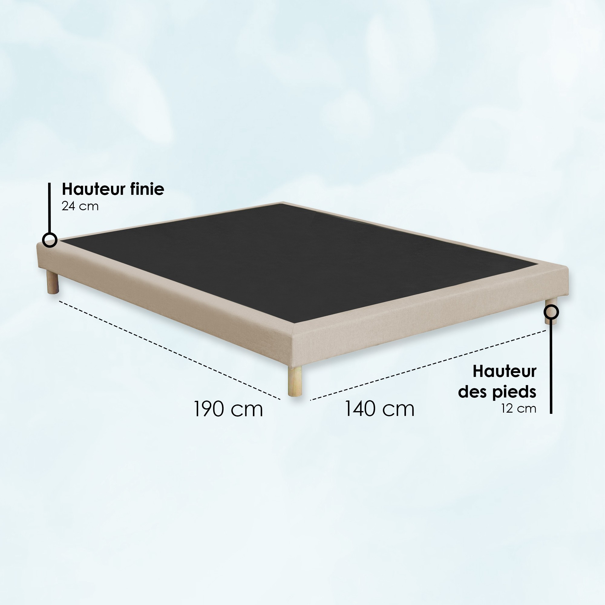 Le sommier est habillé d’un tissu élégant et d’une bande rapportée décorative, apportant une touche esthétique à votre espace nuit. Cette finition soignée en fait un choix parfait pour une chambre raffinée et accueillante.