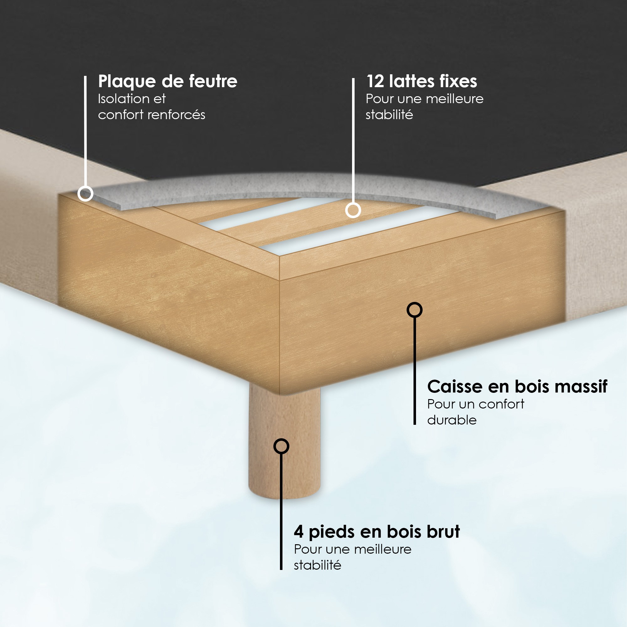 | Type de sommier | Sommier à lattes fixes |