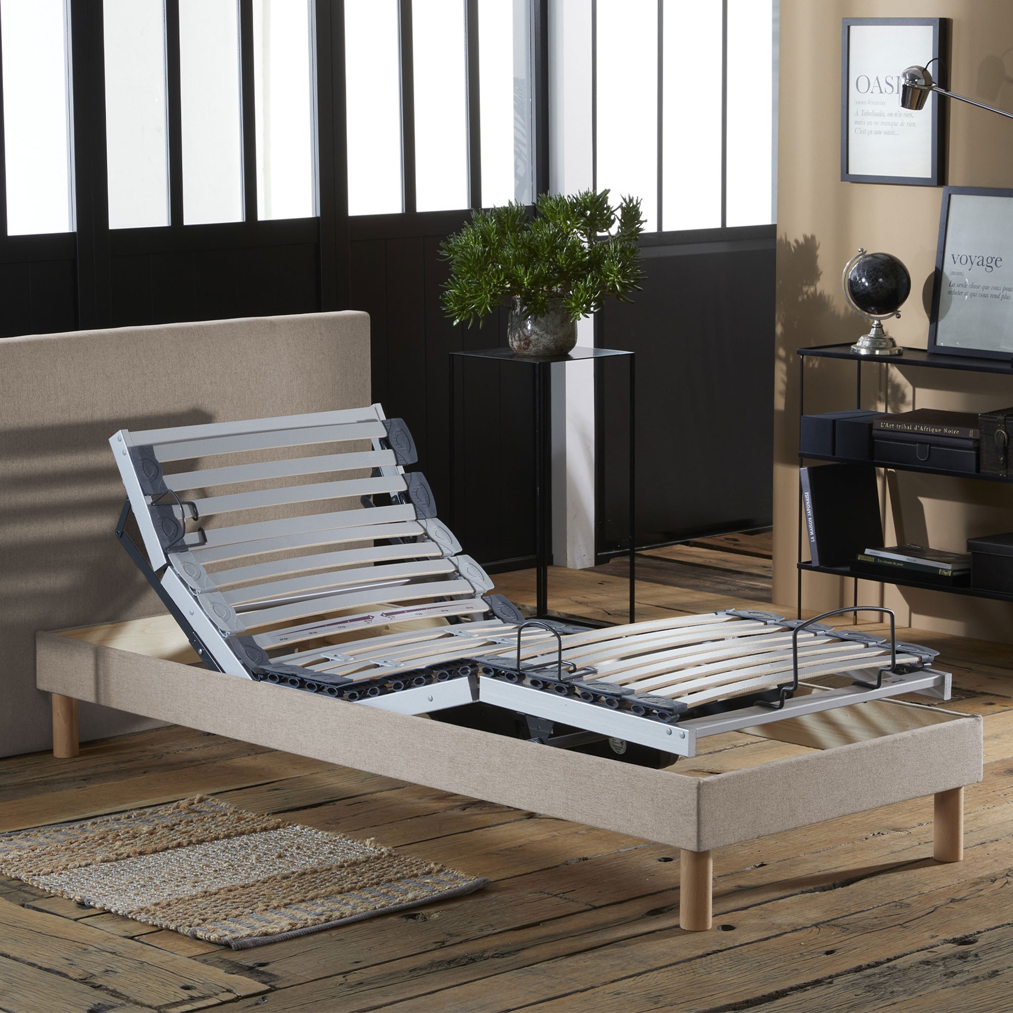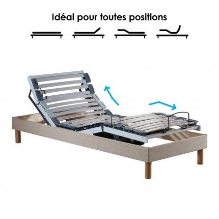 Profitez d’un confort personnalisé avec ce sommier de relaxation motorisés à lattes multiplis, habillés d’un tissu lisse beige au style épuré. Grâce à leurs 5 plans de couchage indépendants, chaque sommier s’ajuste selon vos besoins pour un sommeil sur mesure.
