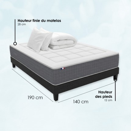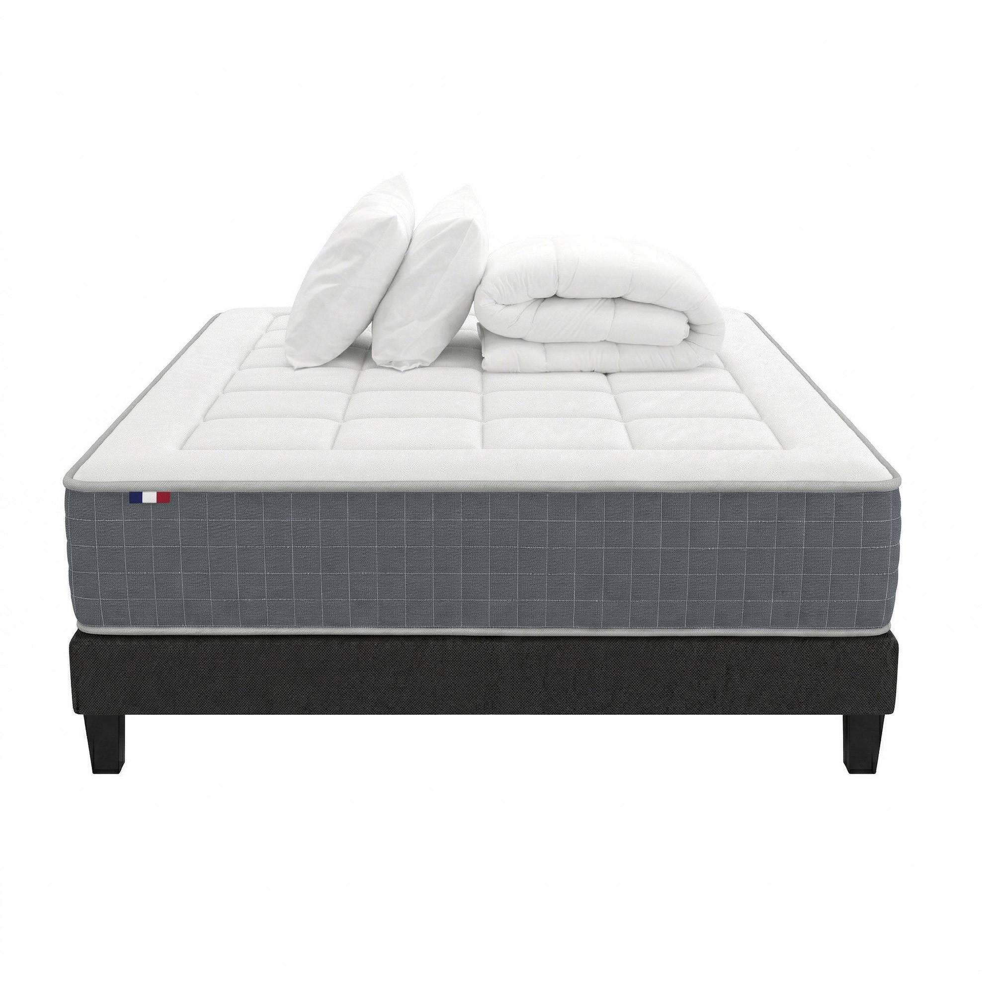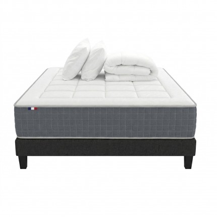 Ensemble Matelas Ressort 7 zones H.30cm + Sommier + couette + oreillers Fabriqué en France MAX