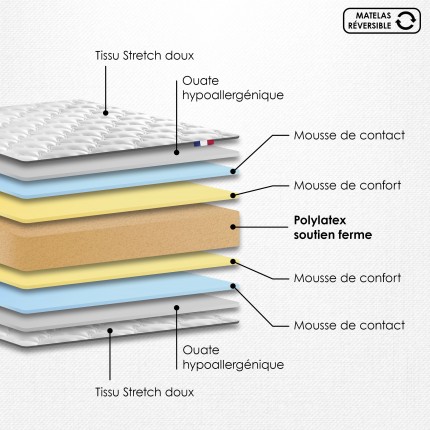 Ensemble Matelas polylatex 80 kg/m³, H21 cm, sommier, tete de lit capitonee beige